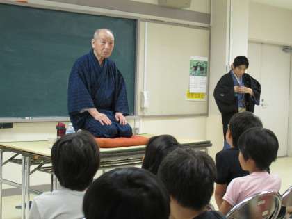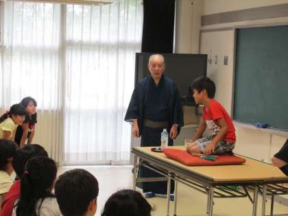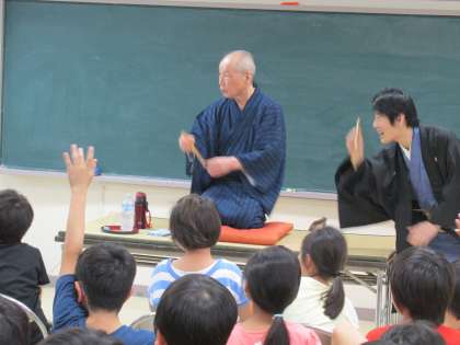 本日4年生は、国語の授業の一環で、毎年恒例の「落語出前授業」がありました。