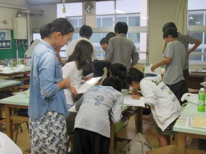 最後にみんなで卒業アルバムに寄せ書きをしています。