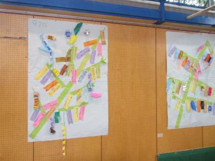 体育館の壁面には子どもたちの作った短冊があちらこちらに飾られています。