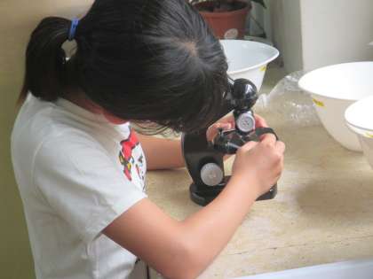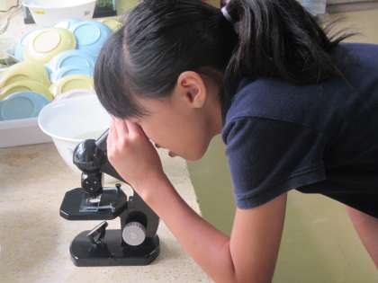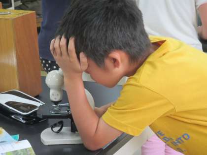 そこに100周年記念池のお水をプレパラートに置き、観察を始めます。
