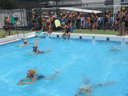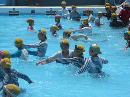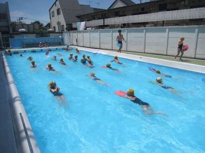 まずはじめに平泳ぎでばんばん泳ぎこみをします。
