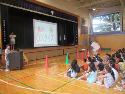 今朝の集会の時間に集会委員会がゲーム集会を行いました。