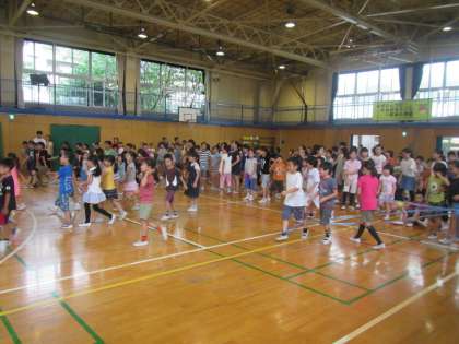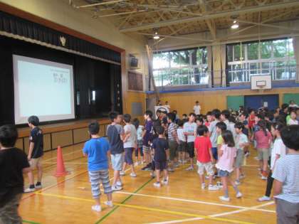 体育館に集まった子どもたち。
