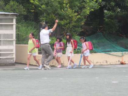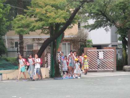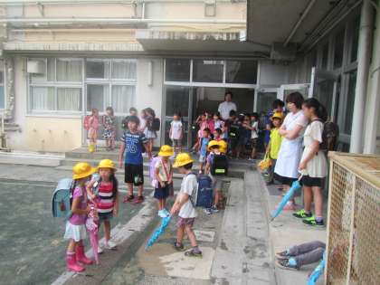 ちょうど雨が上がって、みんな元気に登校してくれました。