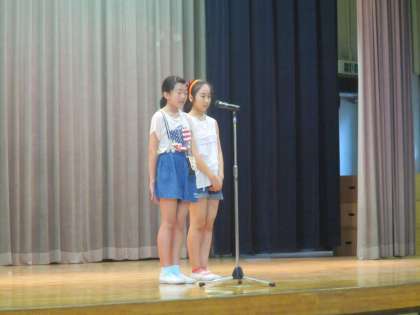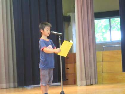 校長先生のお話に続いて児童代表の言葉の発表がありました。