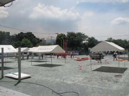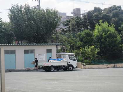 今日は朝から校庭にトラックがやってきて、早くも櫓が組みあがりつつあります。