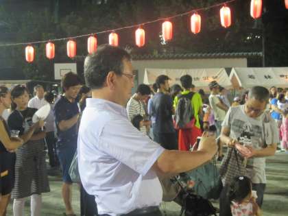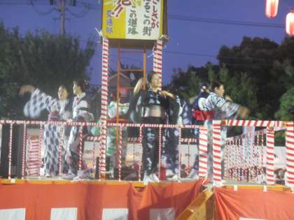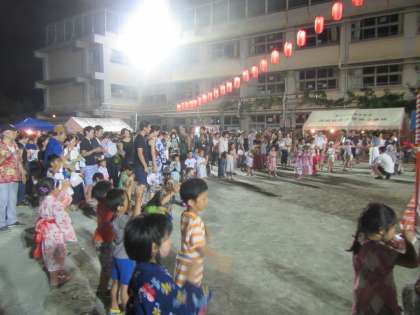 若小の校庭に組みあがった立派な櫓を中心に、踊りの輪ができています。