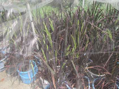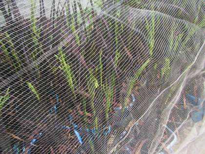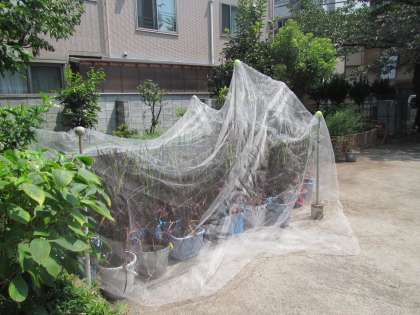 早くも穂がつき始めたため、鳥よけのネットを設置しました。