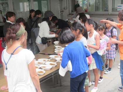 そしてアルファ米で炊いたカレーライスをみんなでいただきました。