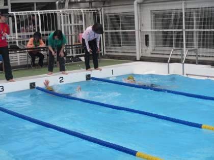 記録係の先生もストップウォッチを握る手に力がこもります。