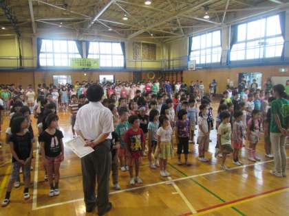 若小の一週間は全校朝会から始まります。