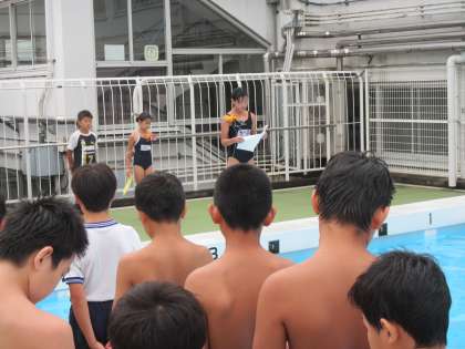 校長先生からはおほめの言葉、そして小学校生活での水泳の学習を終えた6年生に励ましの言葉がありました。