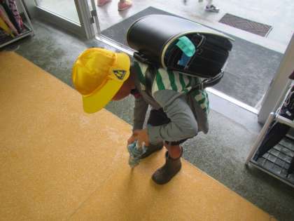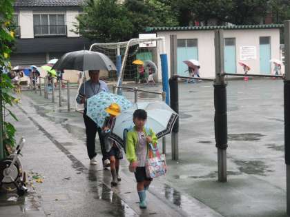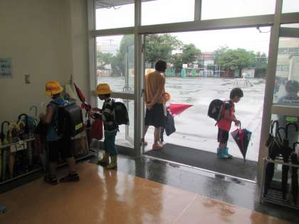 みんな傘をさして登校してきますが、玄関の外できちんと水をおとし、