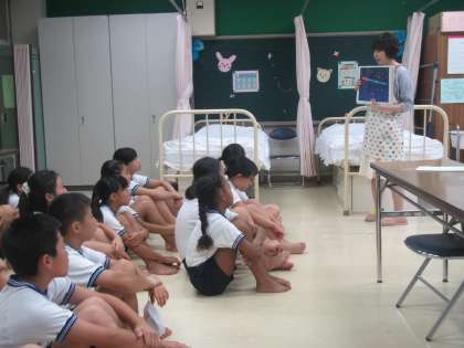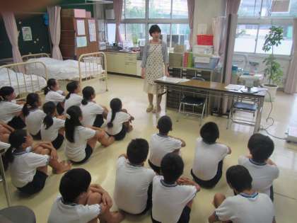 若小では発育測定に合わせて、養護教諭からの保健指導も行っています。