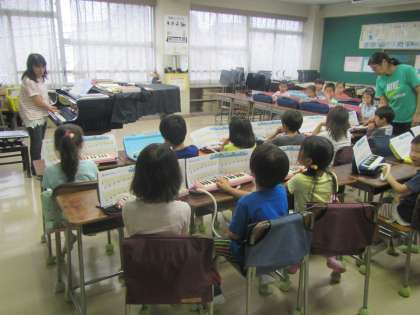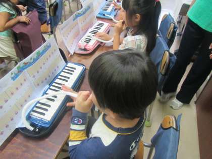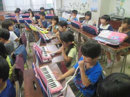1年生は音楽の時間に鍵盤ハーモニカの練習をしました。