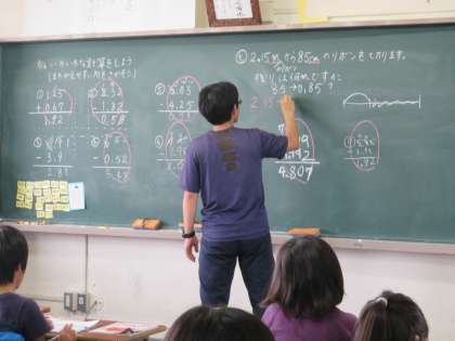 4年生は算数の時間に小数の計算をしています。