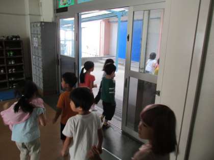 子どもたちは真剣に訓練に取り組み、その後で講評のために体育館に集結しました。
