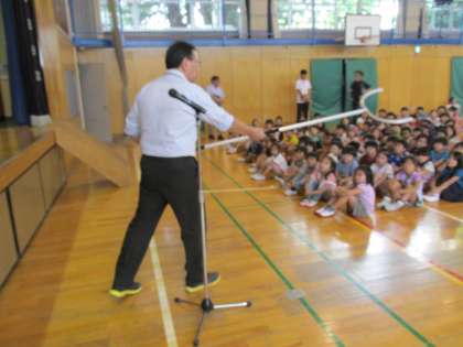 校長先生からは実演を交えて、訓練の大切さを身を守る方法についてお話がありました。
