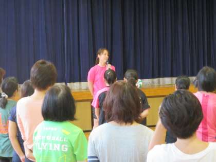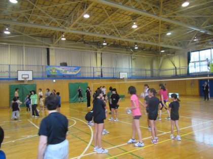 体育館ではバレーボール選手の大山先生をお招きして、バレーボール教室が行われました。
