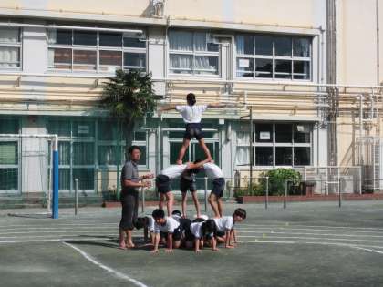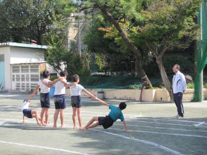 さわやかな秋空の元、高学年の子達は組体操の調整を行いました。