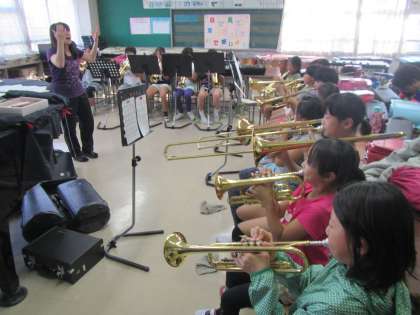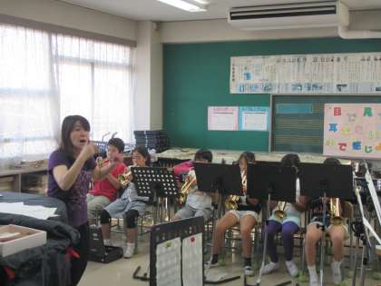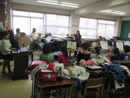 運動会練習の疲れも見せず、放課後の音楽室では若小サウンドが鳴り響いていました。