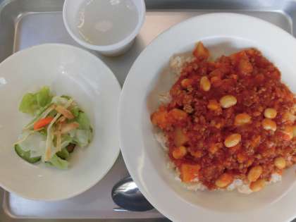 【献立】チリビーンズライス・ごぼうチップサラダ・ホワイトゼリー・牛乳