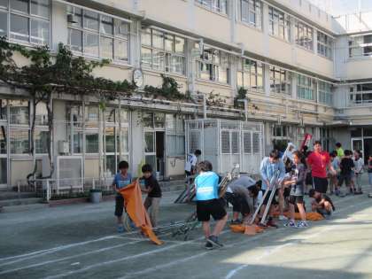 4年生以上の学年の子達が、運動会に向けて準備をしました。