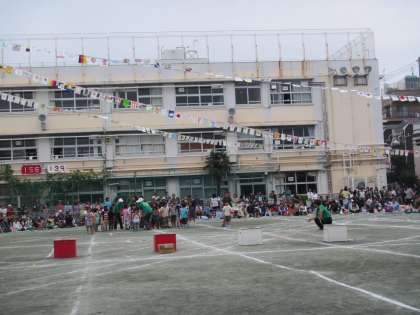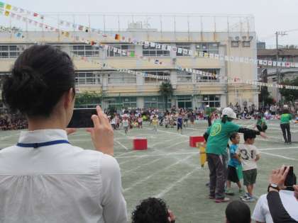 かわいい子どもたちが一生懸命に若小の校庭を走ります。