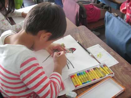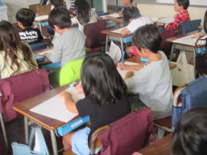 1年生は運動会の出来事を絵に描く活動に取り組みました。