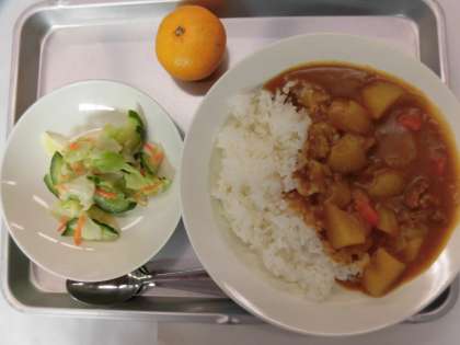 【献立】カレーライス・キャベツサラダ・みかん・牛乳
