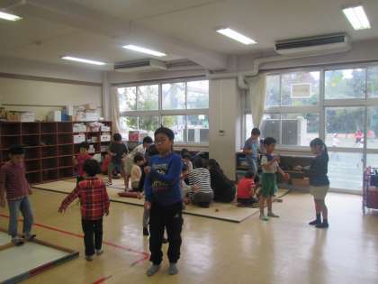 中休みに地域の方が遊びに来てくださり、折り紙やけん玉、将棋等、懐かしい遊びを教えてくれるイベントです。