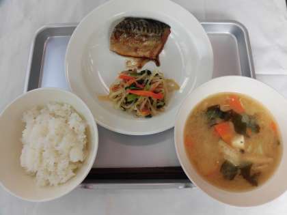 【献立】ごはん・さばのソース煮・おひたし・みそ汁・牛乳