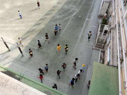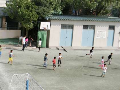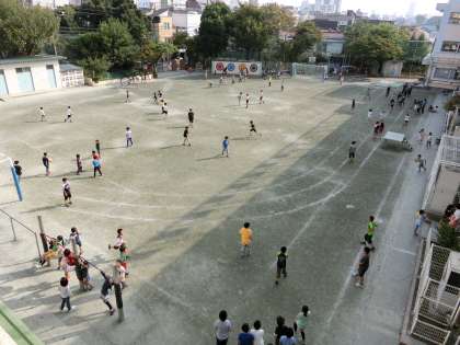 校庭では子どもたちが元気いっぱいに遊んでいます。