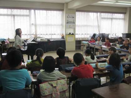 2年生が音楽の時間に元気いっぱいの歌声を響かせていました。