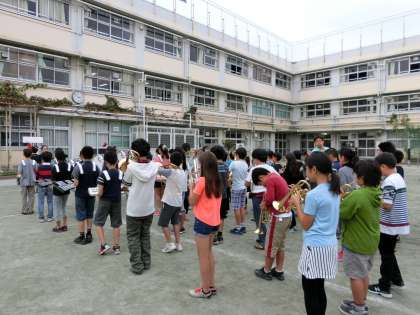 幕末維新祭りで5、6年生が披露するパレードの最終練習を行いました。