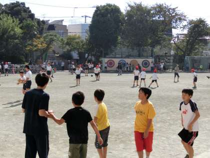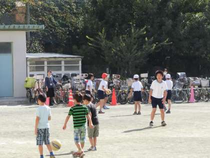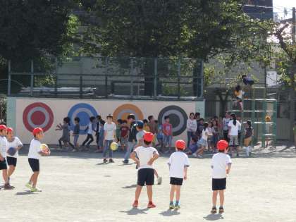 中休みの校庭はたくさんの子どもたちが遊びに出ていました。