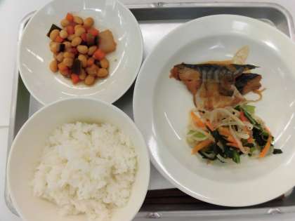 【献立】ごはん・さばのみそ煮・おひたし・五目豆・牛乳