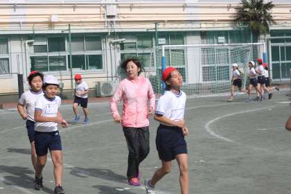 教わった姿勢、胸をはる、腕を正しく振る、ということを守って、みんなしっかりと走れました。