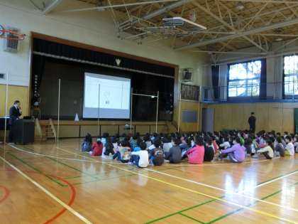 校長先生が全校朝会で読み聞かせをしてくれました。