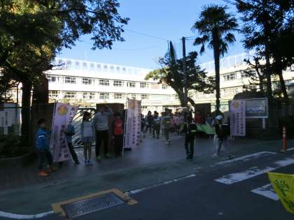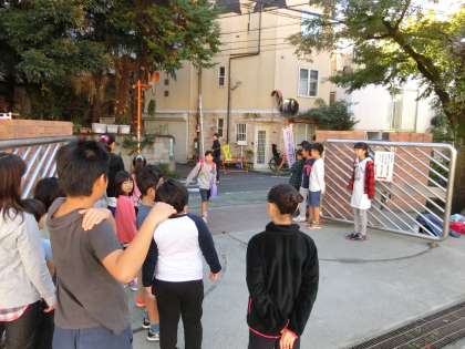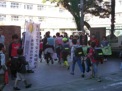 今日から若小班4班の子たちが朝のあいさつ運動を行っています。