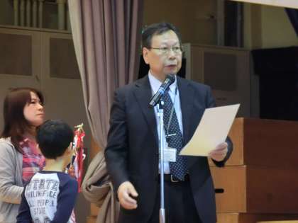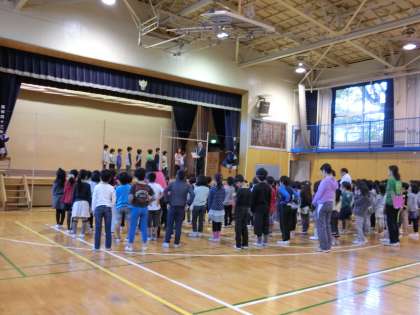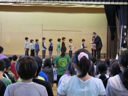 賞状と立派なトロフィーを受け取り、全校児童からお祝いの拍手を受けました。