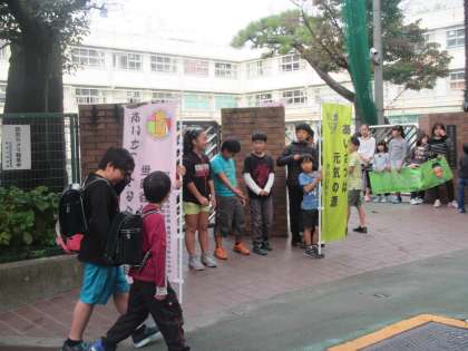 1年生から6年生までが正門の前で待ち受ける様子も、すっかり朝の名物になりました。