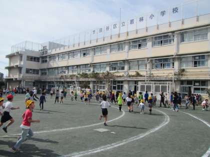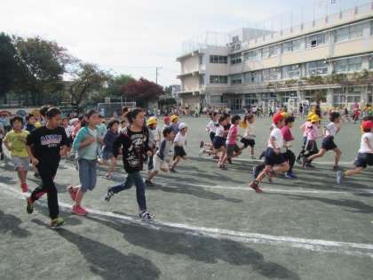 若小の校庭を元気いっぱいに走る子どもたち。