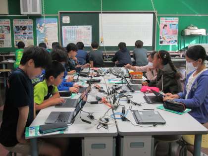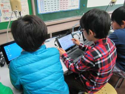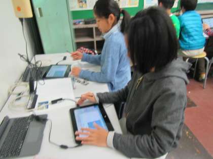9月から導入されたタブレットを活用して、アメダスで午後の天気を予想しました。