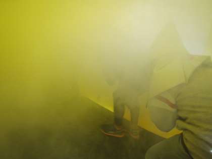 テントの中は安全な煙が十分していて、前がほとんど見えません。