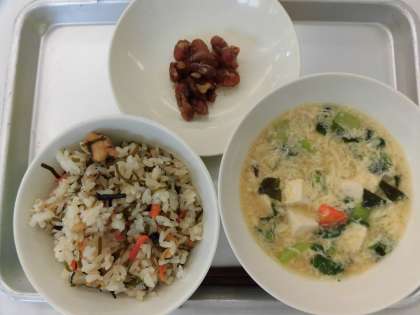 【献立】磯ごはん・かきたま汁・煮豆・牛乳