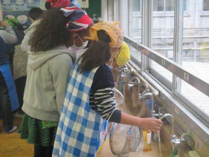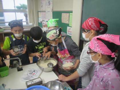 5年生が家庭科の時間にご飯を炊きました。