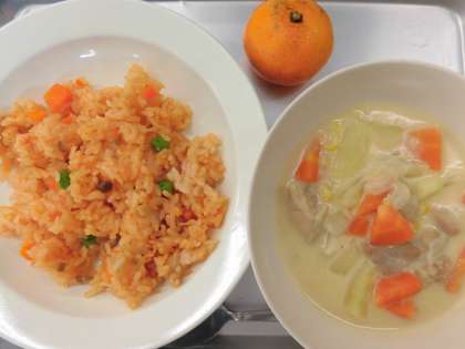 【献立】チキンライス・クリームスープ・みかん・牛乳
