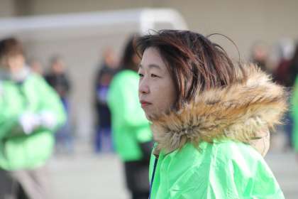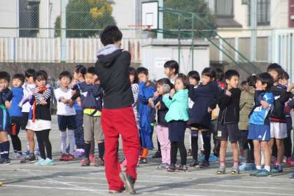 学区にある国士舘大学の学生さんたちが準備運動や先導役を務めてくれました。