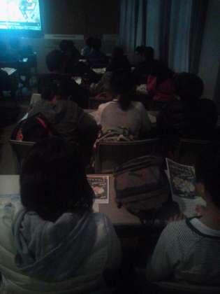 映像を見ながらもメモを忘れない5年生。